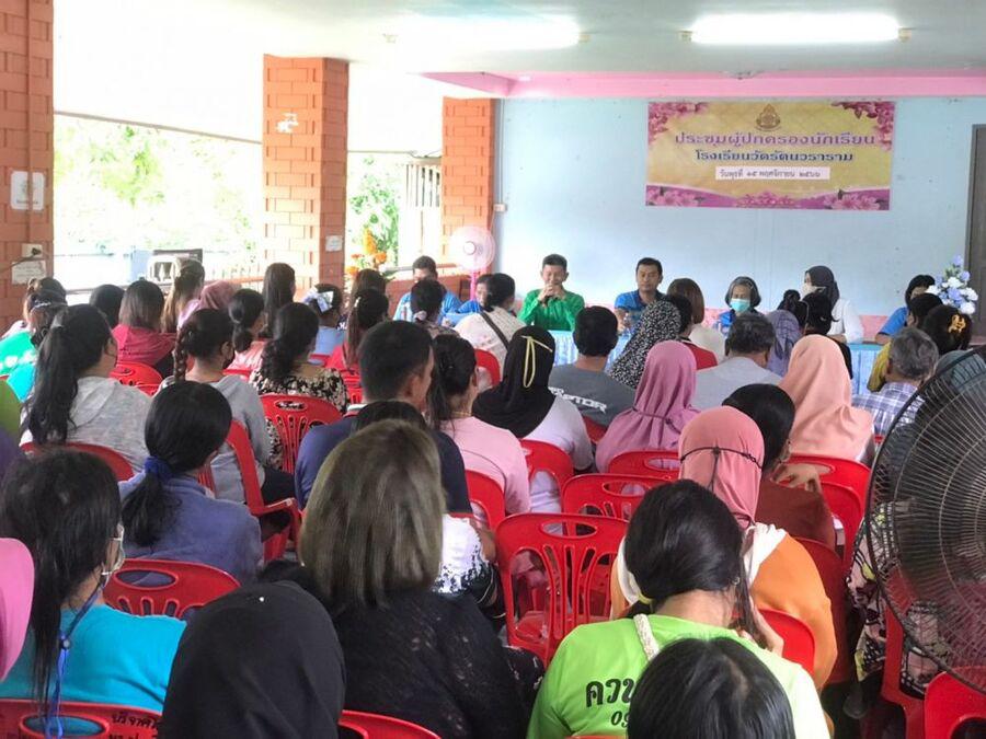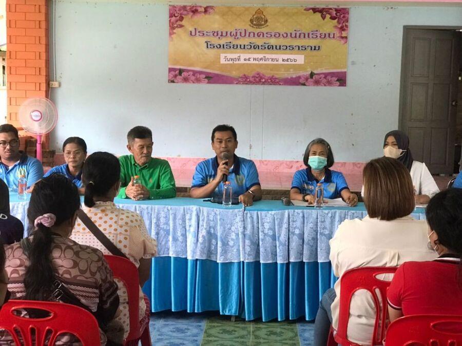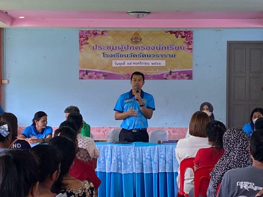 วันที่ 15 พฤศจิกายน พ.ศ.2566 นายพิชัย บุญชูประภา ผู้อำนวยการโรงเรียนวัดรัตนวราราม พร้อมด้วยนายเกษม สมกอบกิจ ประธานกรรมการสถานศึกษาขั้นพื้นฐานโรงเรียน ครูและบุคลากรทางการศึกษา จัดกิจกรรมประชุมผู้ปกครองนักเรียน ภาคเรียนที่ 2 ปีการศึกษา 2566 เพื่อสร้างความรู้ความเข้าใจแก่ผู้ปกครอง ในการดำเนินกิจกรรมของโรงเรียน ในปีการศึกษา 2566 แจ้งรายละเอียดการดำเนินงานของสถานศึกษาตามจุดเน้น 10 อ. เรียนดี มีความสุข ผู้ปกครองพบครูประจำชั้น โรงเรียนวัดรัตนวราราม ขอขอบคุณผู้ปกครองทุกท่านที่ได้ให้ความร่วมมือกับทางโรงเรียนวัดรัตนวรารามด้วยดีเสมอมา S:0